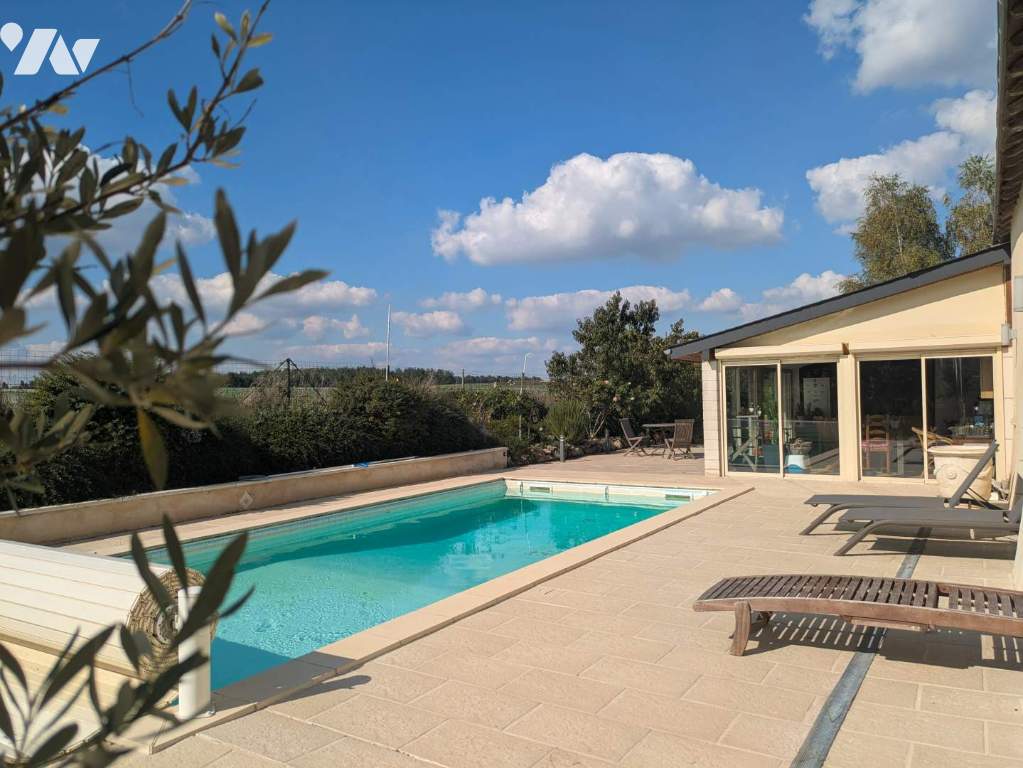 PISCINE, terrasse, véranda, avec vue sur la campagne.